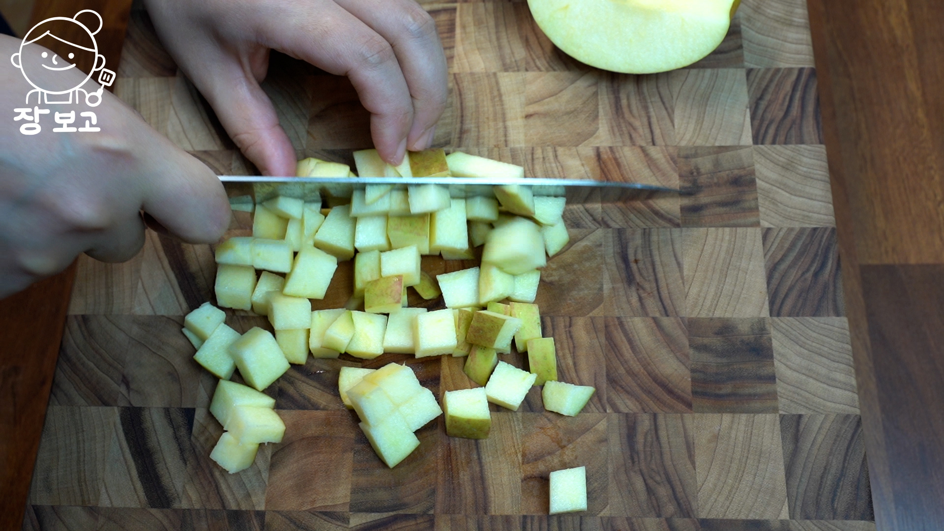 4. 한김 식는 사이에 사과를 손질한다.