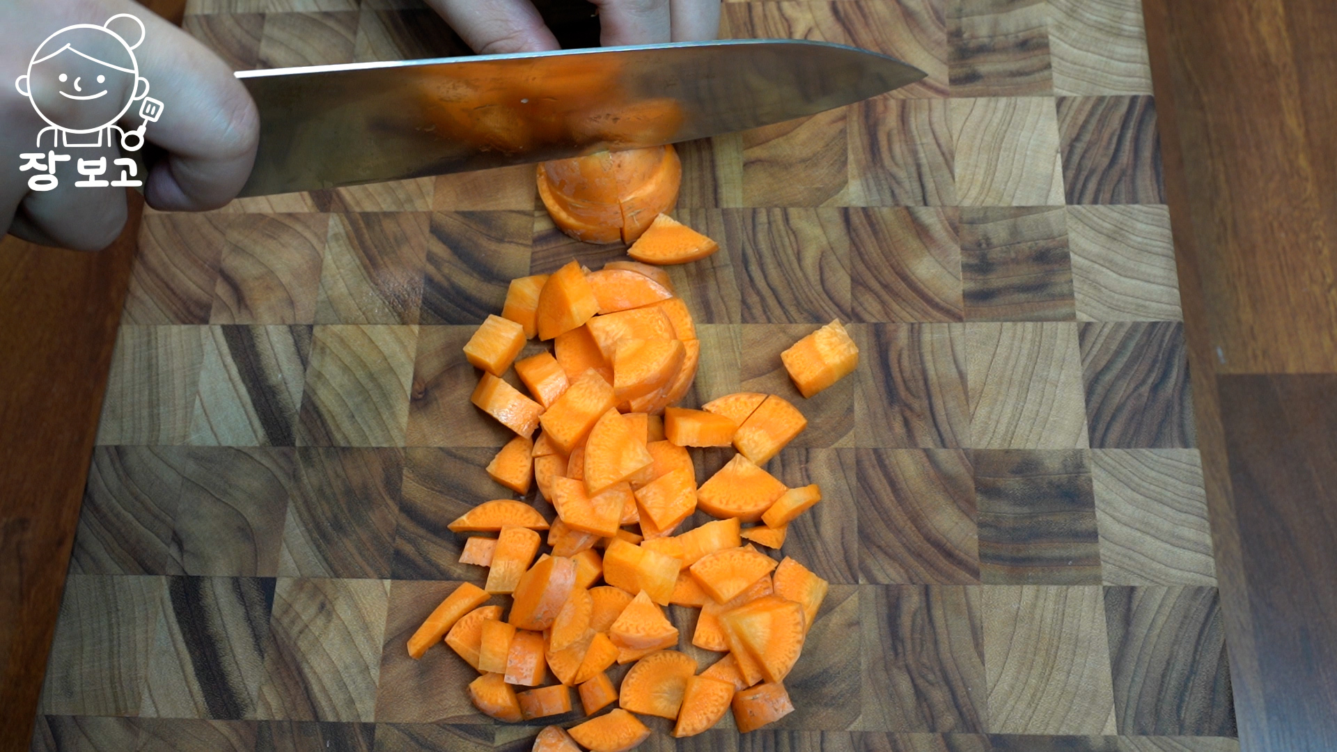 2. 사과 ->양배추 -> 당근 순서대로 잘게 썬다. 믹서기에도 이 순서대로 넣어야 사과에서 수분이 나와 잘 갈린다.