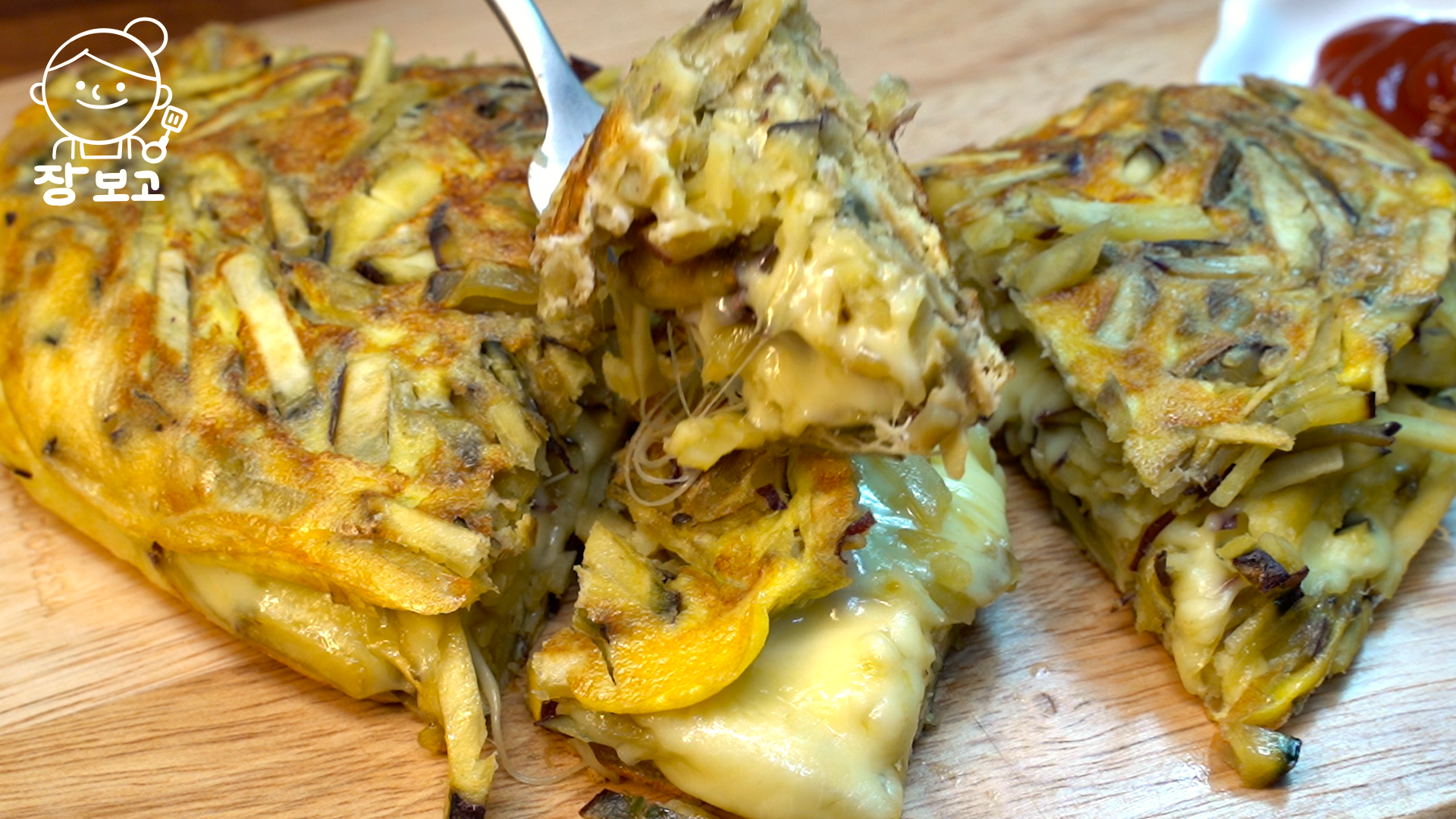 고구마, 계란, 피자치즈, 네오플램 프라이팬, 포도씨유