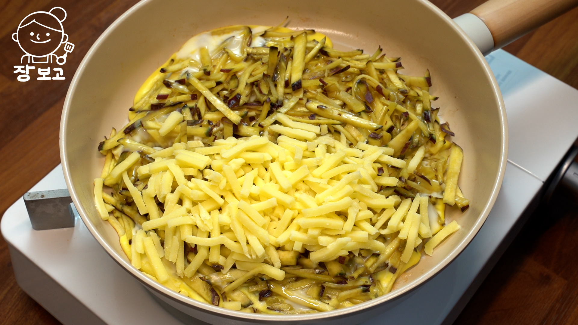 고구마, 계란, 피자치즈, 네오플램 프라이팬, 포도씨유