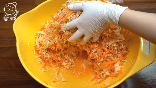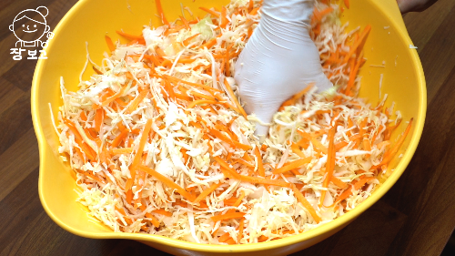 4. 버무린 당근과 양배추는 상온에서 20분간 둔다.
