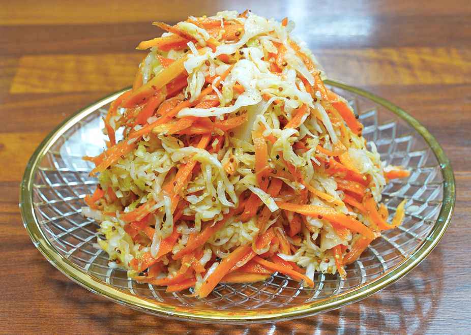 8. 당근 양배추 라페 완성! 만들자마자 먹어도 어느 정도 간이 되어있지만, 냉장고에서 반나절 두면 간도 잘 배고 맛이 어우러진다.