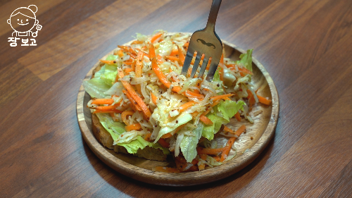 양상추에 당근라페 잔뜩 올리기!