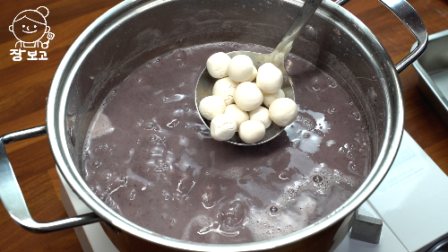 9. 갈아준 팥물은 강불로 올리고 냉장고에서 건조해둔 새알을 모두 넣어준다. 새알은 나이수대로 먹는 거라고 하니 크게 빚었다가는 배가 터질 수 있다;