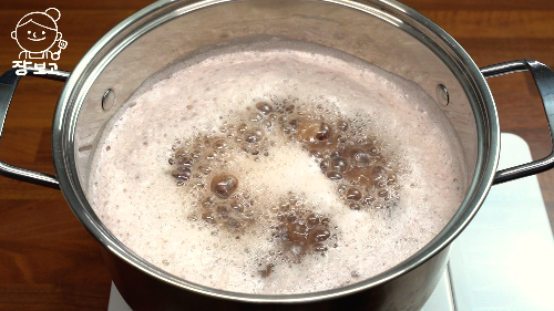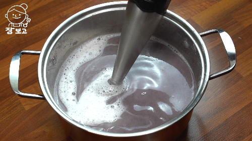8. 팥물은 뜨거울 때 핸드 블랜더로 곱게 갈아준다.