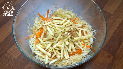 세계 유명 암센터에서 환자들에게 주는 게 바로 CCA주스라고 하죠. 양배추, 당근, 사과의 앞자리 스펠링을 따서 만든 거라는데요. CCA주스를 샐러드 버전으로 만들어 봤습니다~^^ 매일 먹어도 질리지 않고, 물 생기지 않고 새콤달콤 맛있는 샐러드입니다.