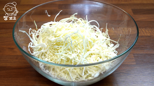 2, 양배추는 얇게 채 썬다
