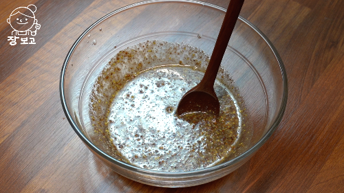 8. 씨겨자 2큰술, 들깻가루 1 큰술, 식초 2 큰 술, 알룰로오스 1 큰 술, 소금 1꼬집 넣고 잘 섞어 소스를 만든다