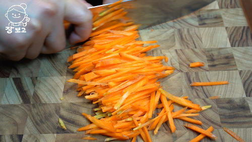 3. 당근은 껍질째로 깨끗이 씻어서 얇게 채 썬다