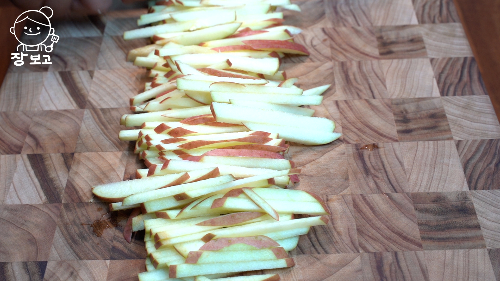 7. 사과는 씨를 제거하고 채 썬다