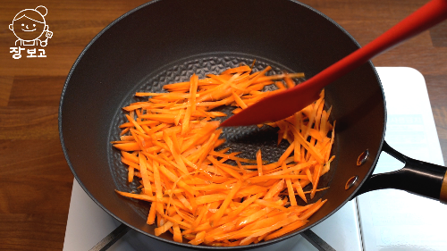 6. 양배추 볶은 올리브오일 2큰술 넣고 당근을 볶는다