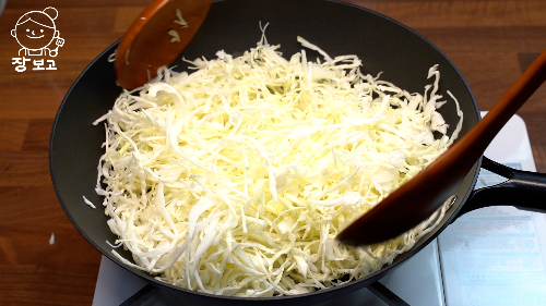 4. 웍에 양배추 넣고 약불로 덖어주듯 볶는다