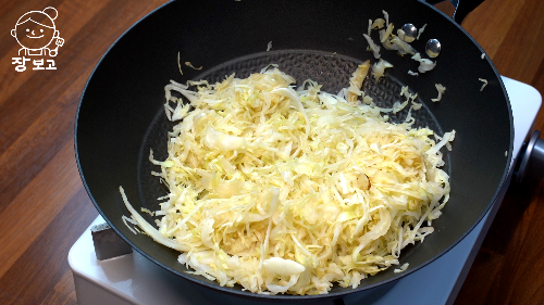 4. 웍에 양배추 넣고 약불로 덖어주듯 볶는다