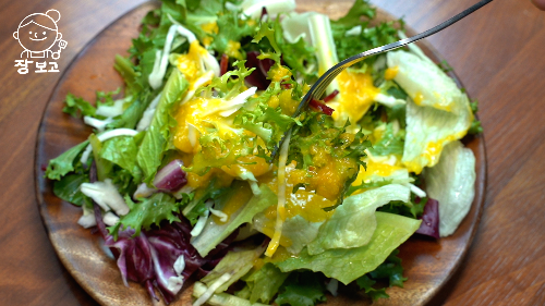 귤청에 식초만 넣고 섞으면 샐러드와 너무 잘 어울리는 소스가 완성된다.
