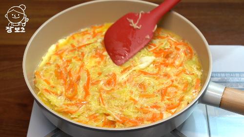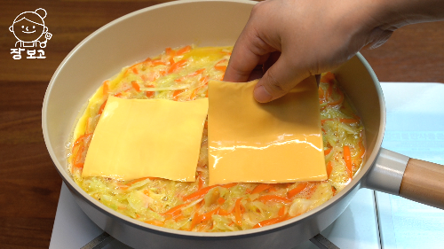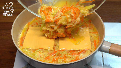 양배추, 양파, 당근, 계란, 체다치즈, 올리브 오일, 네오플램프라이팬