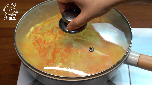 7. 뚜껑 닫고 약불로 2분 익힌다.
