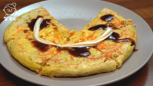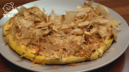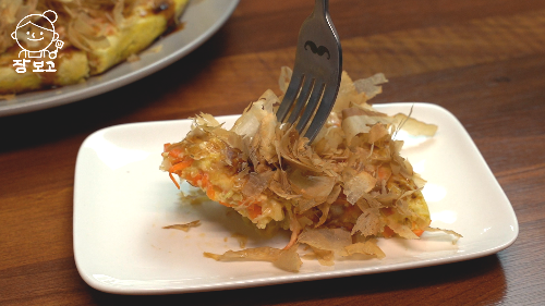 기름지지 않고 담백한 초간단 오꼬노미야끼가 완성되었다
