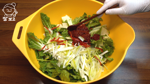 매운걸 못 먹으면 고춧가루 양을 줄여서 넣는다. 아주 맛있는 겉절이 양념이다.