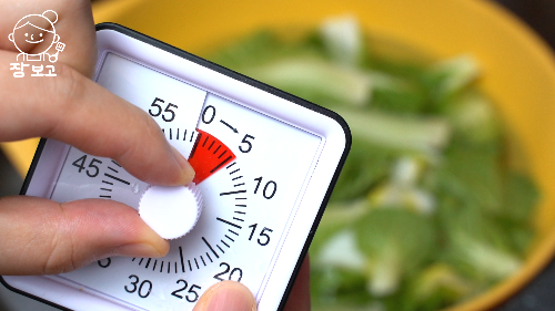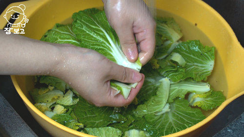 2. 봄동은 뿌리쪽에 흙이 많으니 손으로 비벼가며 씻고 식초를 조금 넣어서 5분간 그대로 둔다.