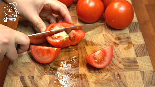 1. 토마토는 베이킹소다 약간, 물 살짝 넣어 뽀득뽀득 문질러 닦는다.
