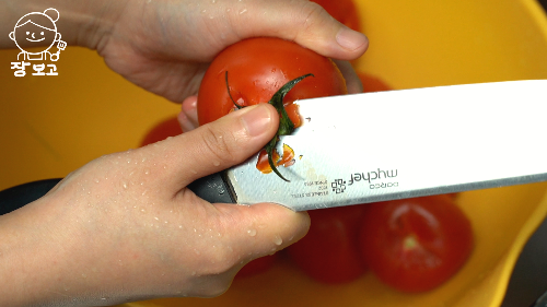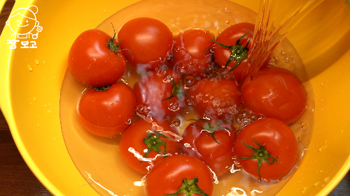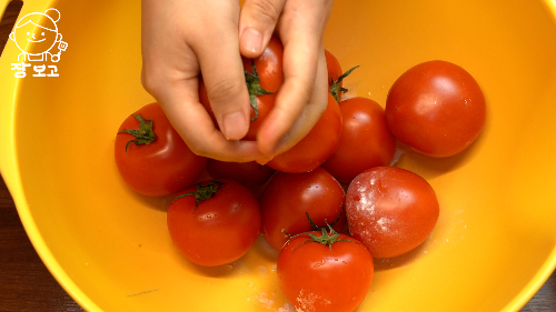 1. 토마토는 베이킹소다 약간, 물 살짝 넣어 뽀득뽀득 문질러 닦는다.