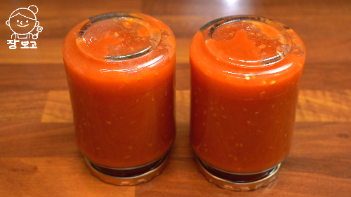8. 뒤집어서 하루 둔 다음 똑바로 놓고 보관하면 1년동안 변질 없이 먹을 수 있는 토마토 캔닝 완성!
