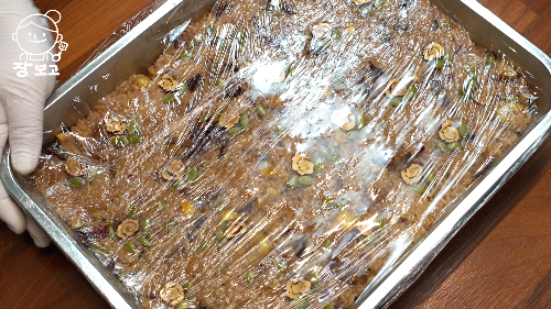 13. 표면이 마르지 않게 랩을 덮어 식힌다.