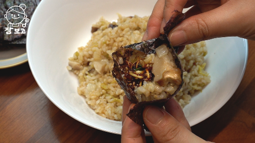 윤기가 자르르 한 현미 배추밥도 완성되었다.