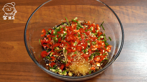 8. 매콤하게 먹고 싶다면 청양고추 1개, 홍고추 1개 다져 넣으면 훨씬 맛있다.