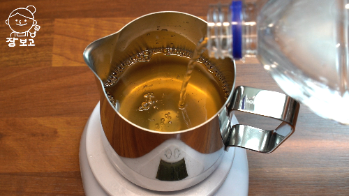 6. 표고 불린 물에 물을 추가로 넣어 총 310ml를 맞춰서 밥 솥에 붓고 잡곡밥 취사한다.