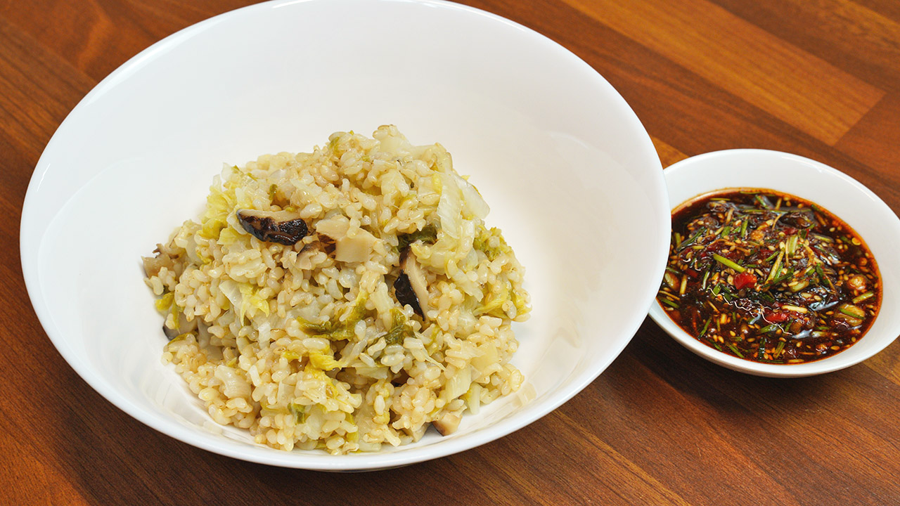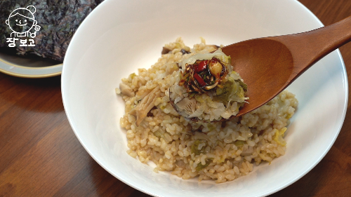 현미, 건 표고버섯, 배추, 달래, 다진 마늘, 고춧가루, 매실청, 양조간장