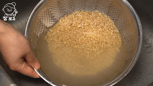 1. 현미는 2~3번 흐르는 물에 가볍게 씻어 미지근한 물에 1시간 불린다.