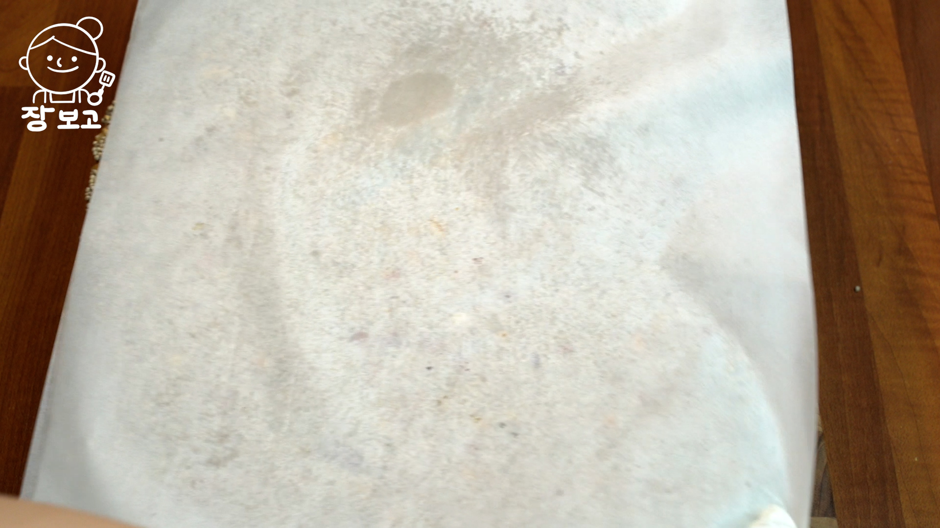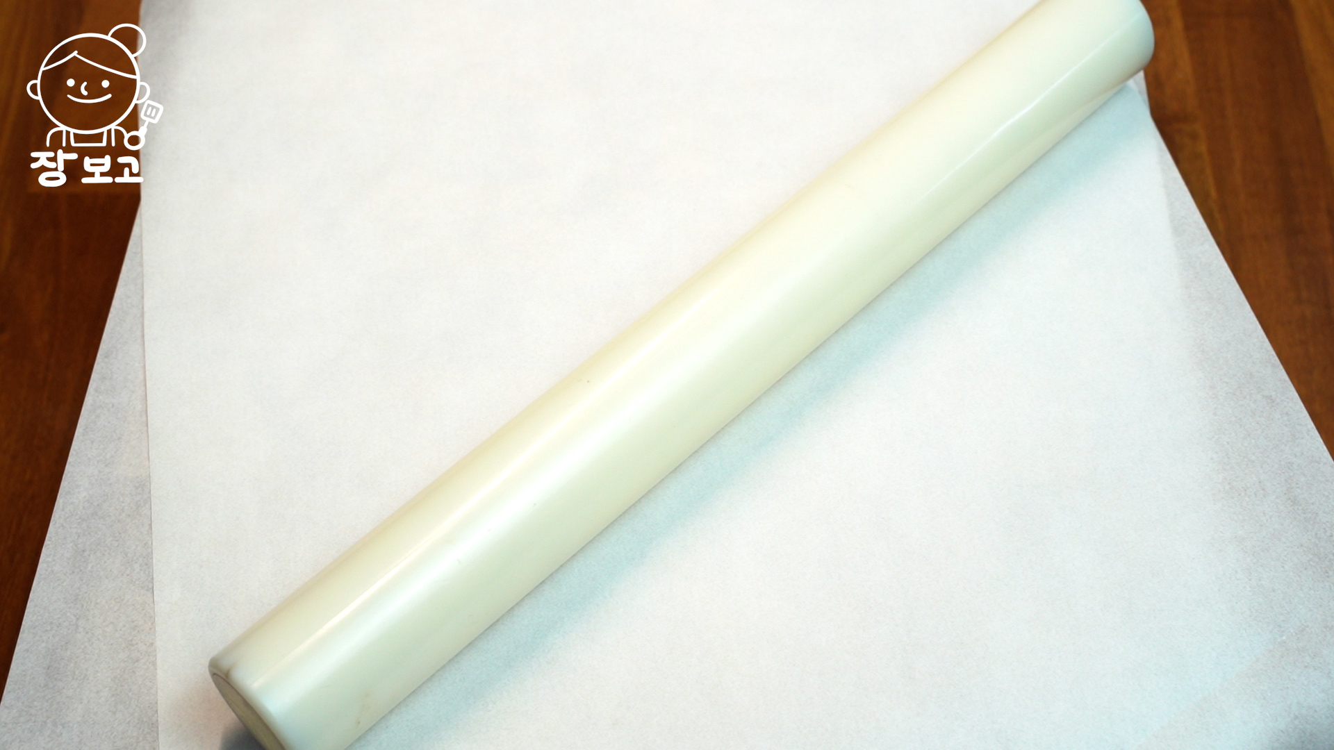 15. 종이호일을 덮고 밀대로 균일하게 밀어준다.