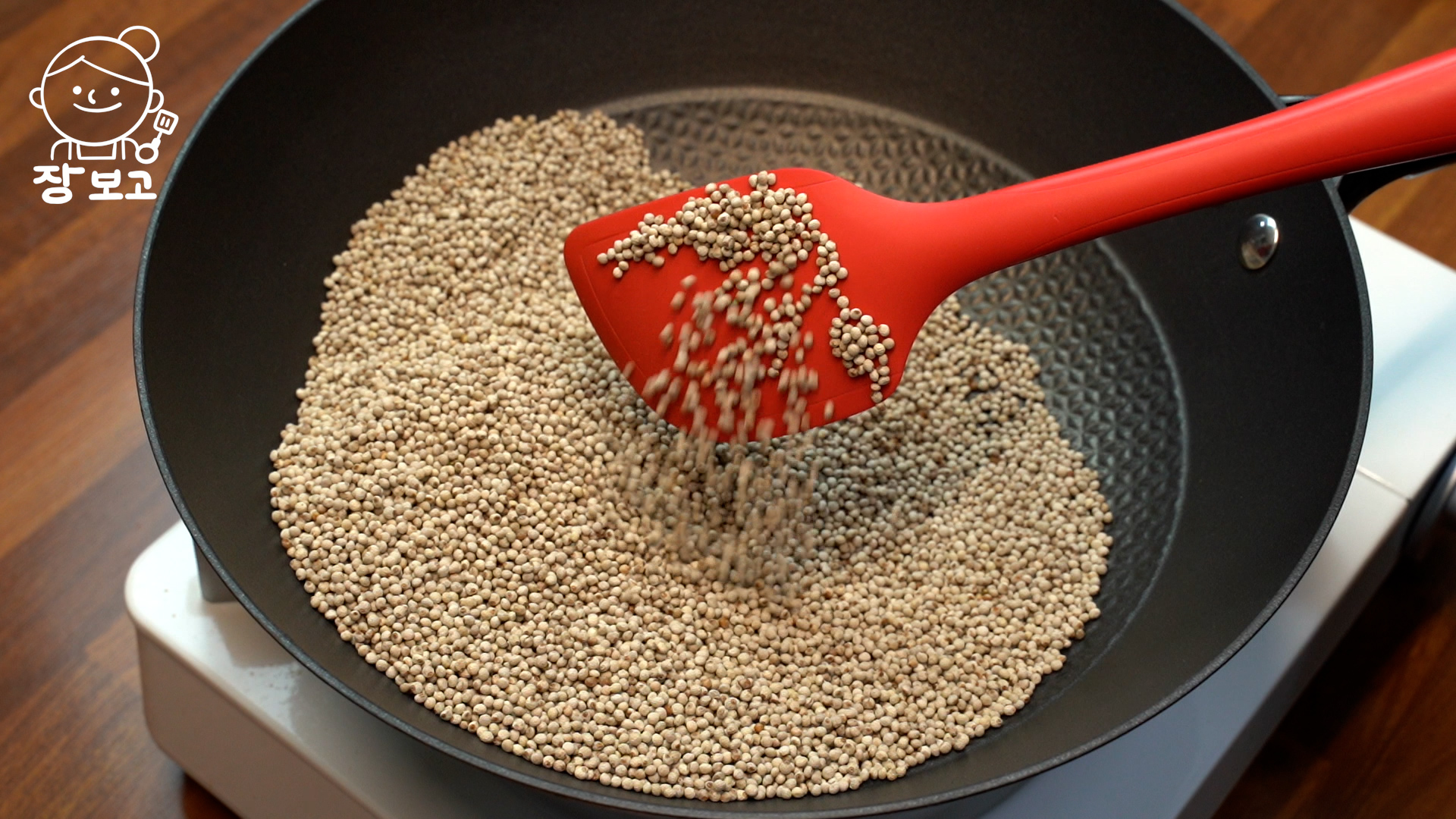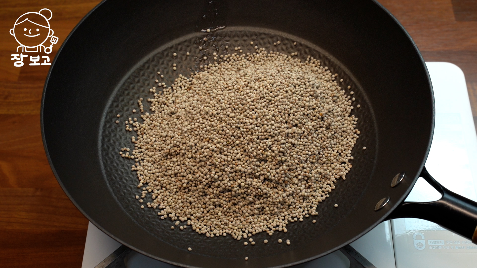 5. 젖은 들깨는 웍에 넣고 중약불로 수분을 날리며 가볍게 볶는다.