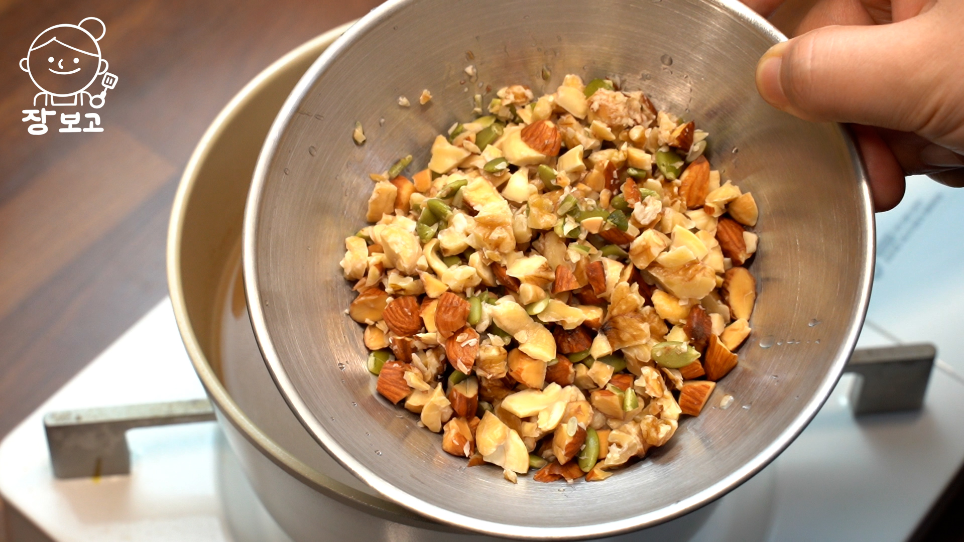 8. 견과류는 들깨 볼에 부어 고루 섞어둔다.