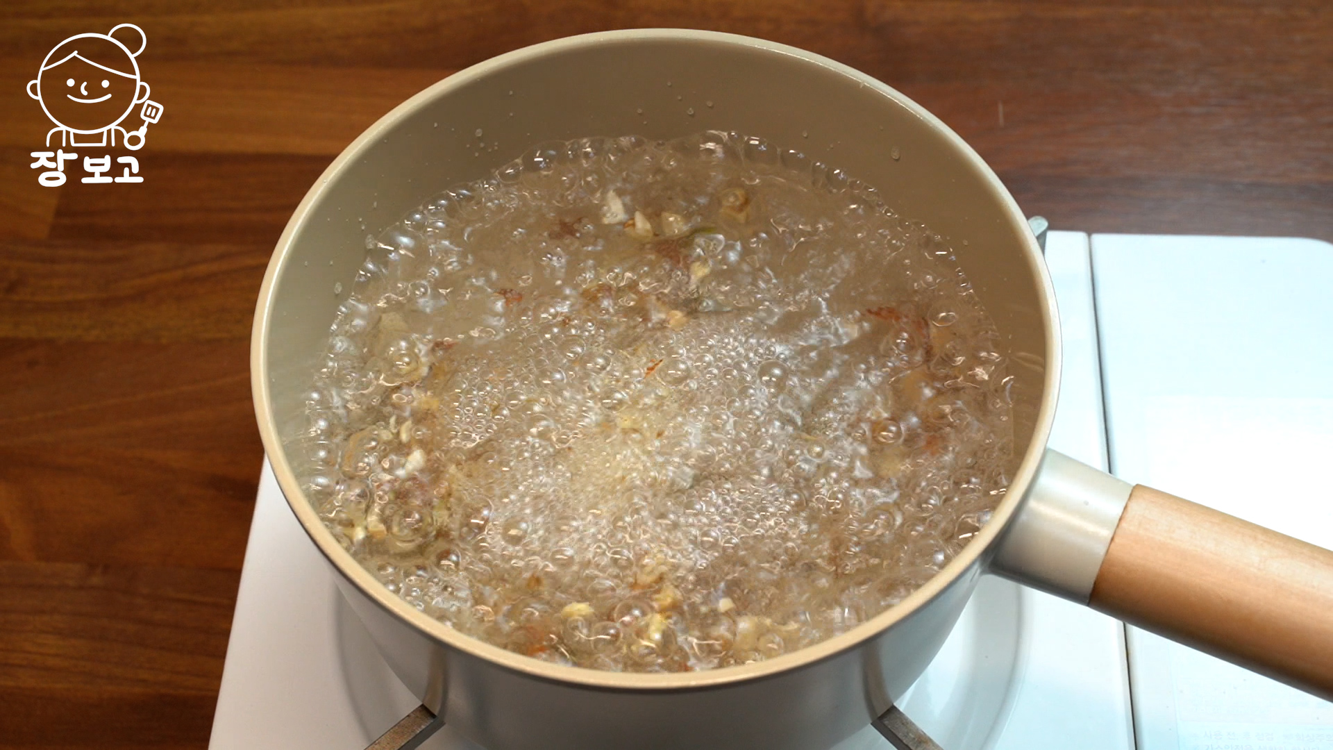 12. 약불에서 3분정도 바글바글 끓어오르면 소금 한 꼬집과 들깨견과류를 넣는다.